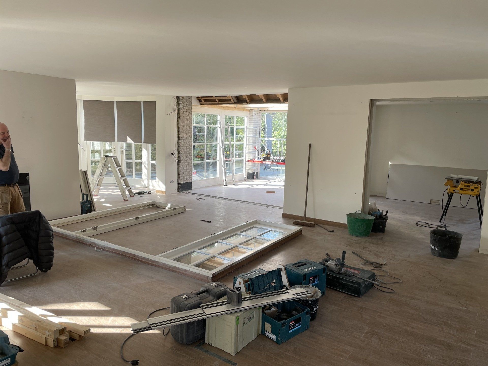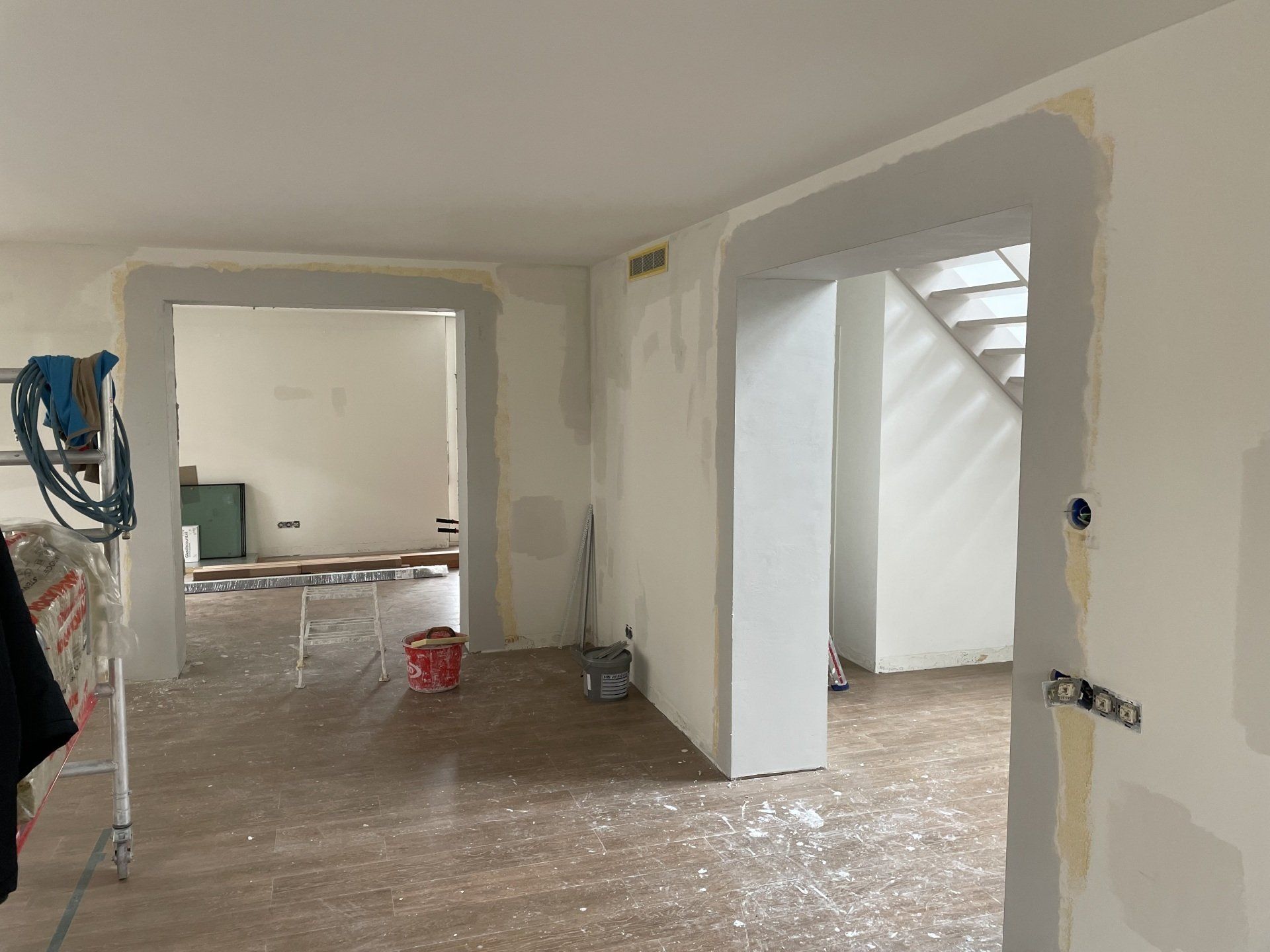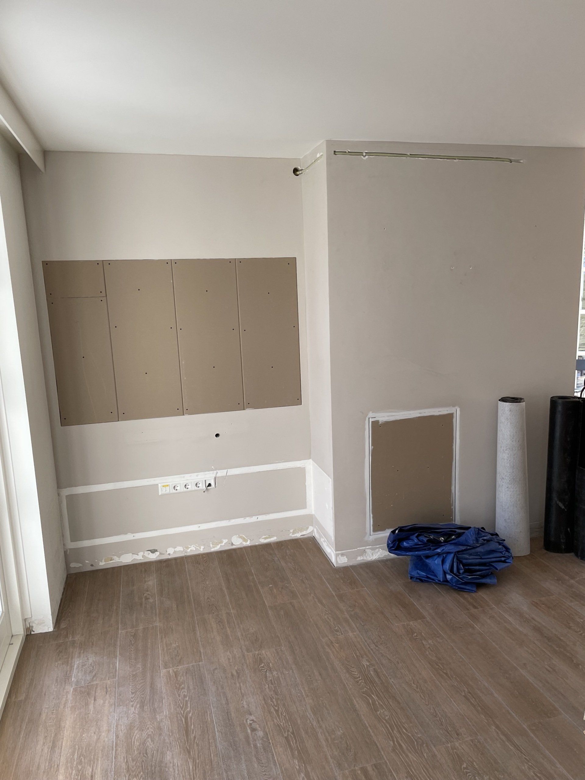 In opdracht van AndereKant (Een andere kijk op interieur) te Hoofddorp, hebben we deze mooie woning aangepast naar de wensen van de klant. Zo is het complete kozijn verplaats, lichtstraat gemonteerd, gestukadoord, compleet geschilderd, vloeren vervangen met PVC visgraat, schuifdeuren worden vervangen door stalen deuren, compleet nieuwe raamdecoratie, keuken wrappen en nog veel meer.
