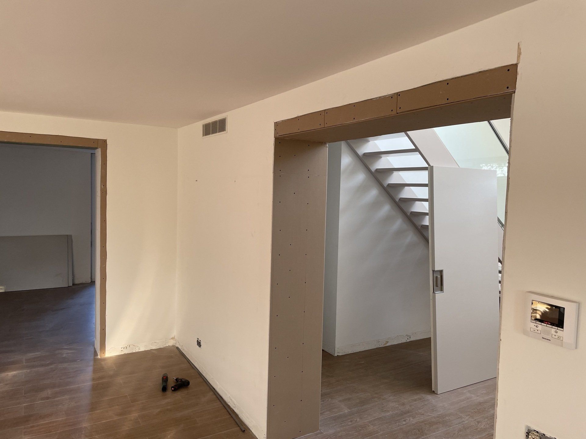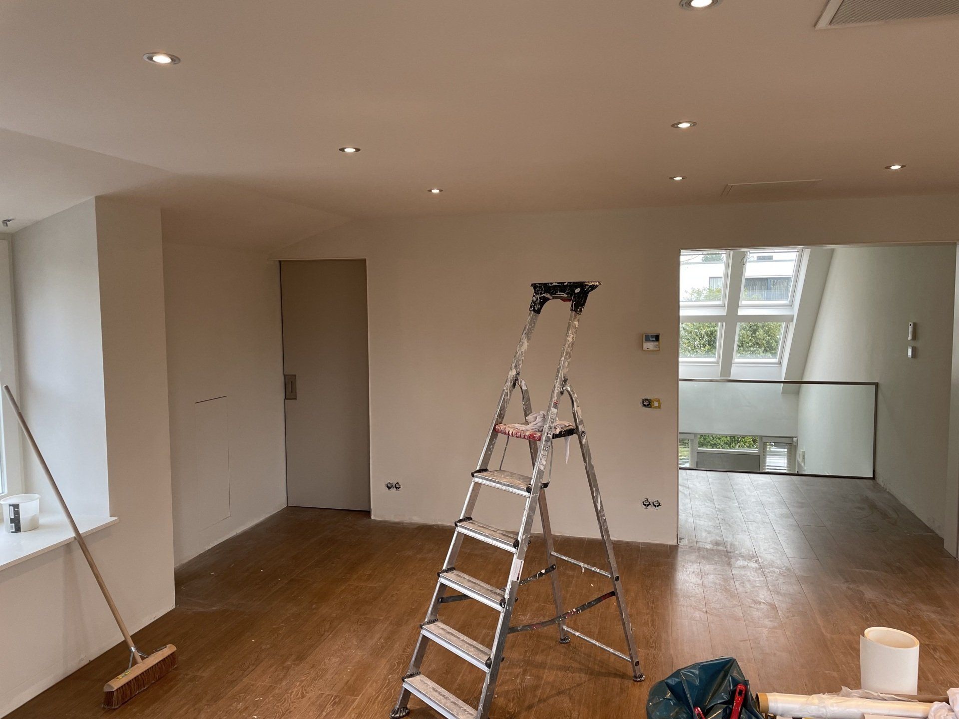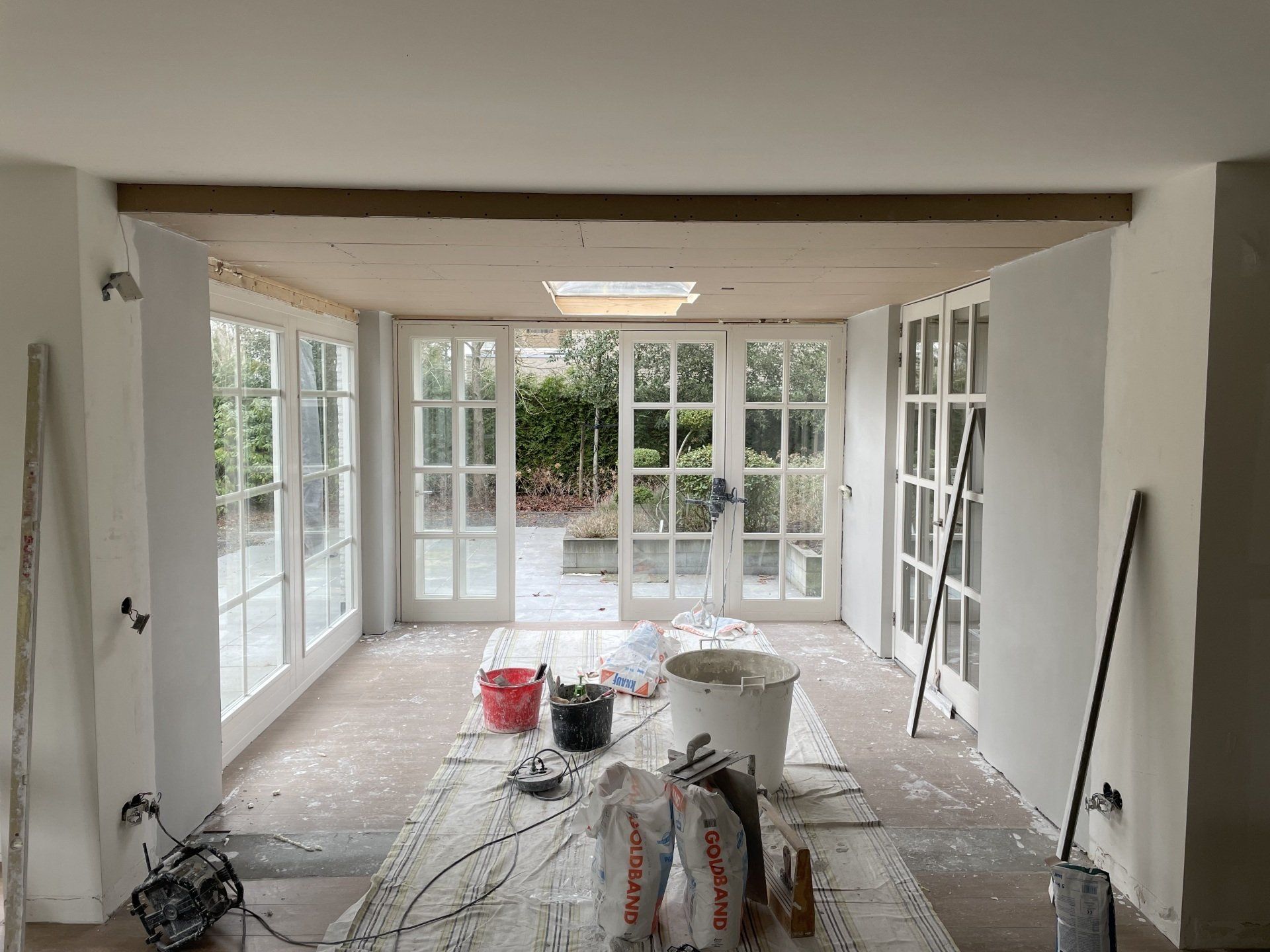 In opdracht van AndereKant (Een andere kijk op interieur) te Hoofddorp, hebben we deze mooie woning aangepast naar de wensen van de klant. Zo is het complete kozijn verplaats, lichtstraat gemonteerd, gestukadoord, compleet geschilderd, vloeren vervangen met PVC visgraat, schuifdeuren worden vervangen door stalen deuren, compleet nieuwe raamdecoratie, keuken wrappen en nog veel meer.